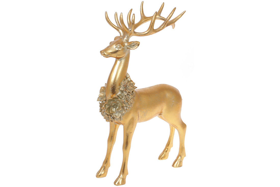 Декоративна статуетка Золотий Олень з намистом із квітів 35 см, колір - золото