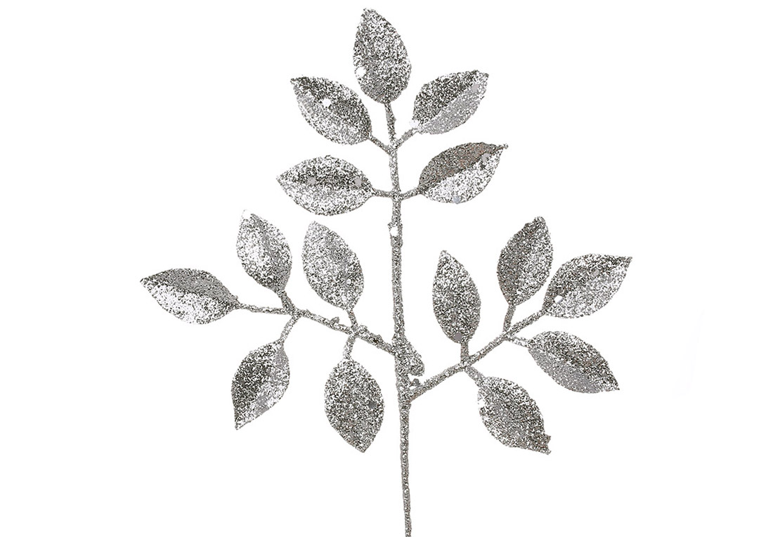 Декоративна гілка ( 3шт ) листя 19см, колір - срібло гліттер