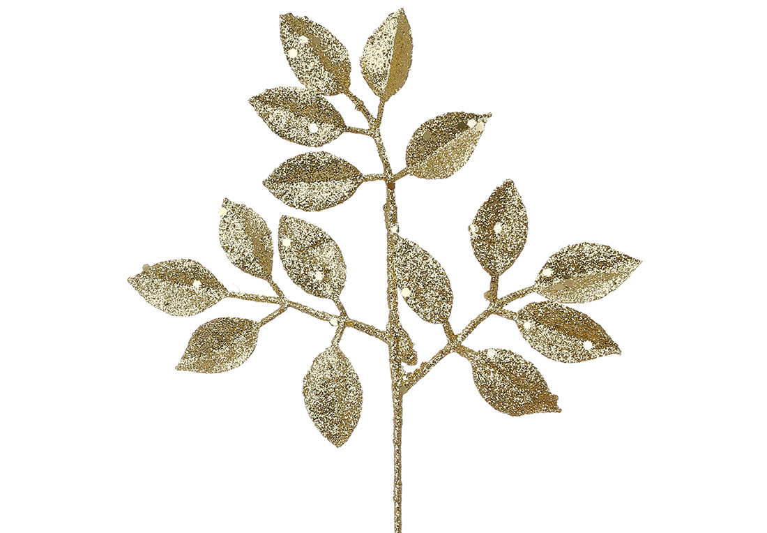 Декоративна гілка ( 3шт ) листя 19см, колір - золото гліттер