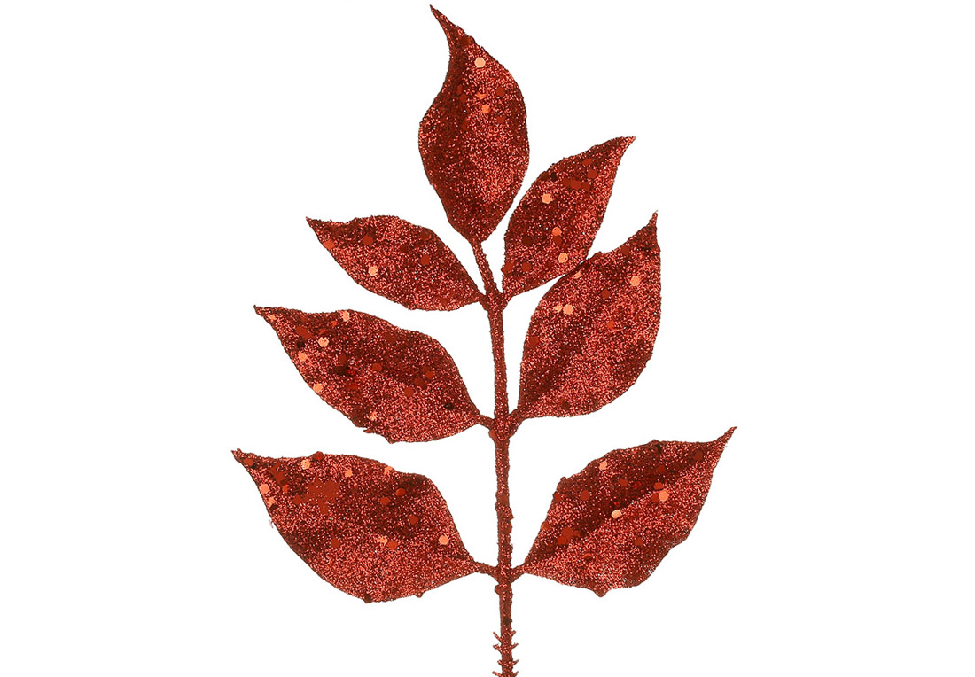 Декоративна гілка ( 3шт ) листя 22см, колір - червоний гліттер