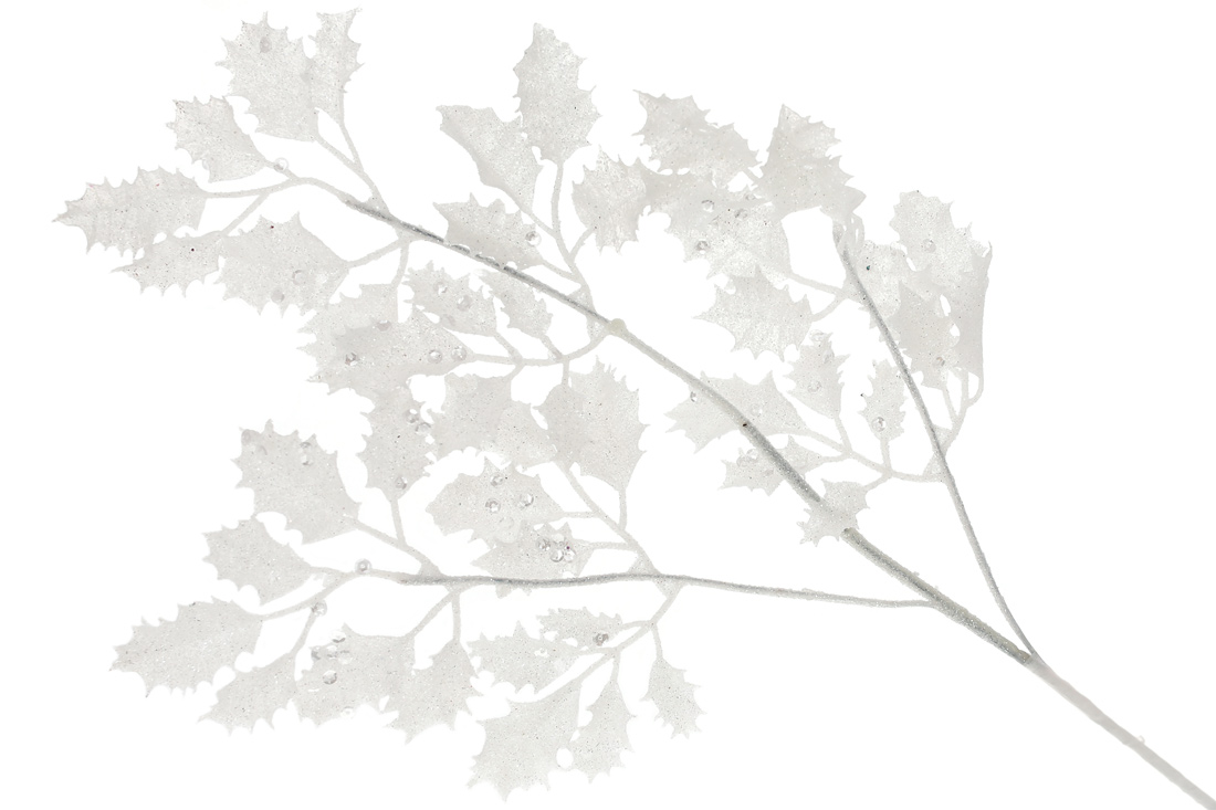 Декоративна гілка 67см, колір - білий гліттер