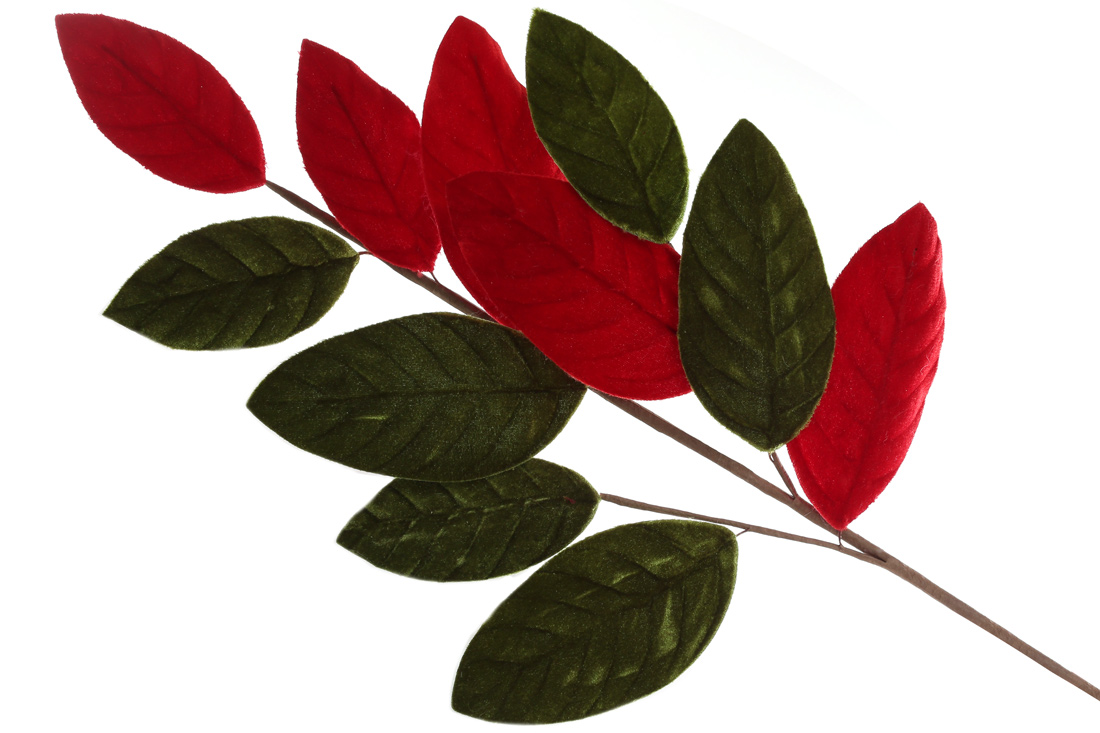 Декоративна гілка Оксамитове Листя 65см, колір - червоний із зеленим