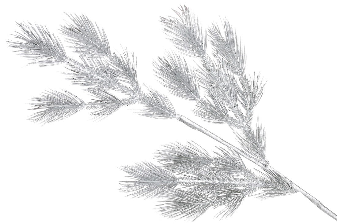 Декоративна гілка хвої 60см, колір - срібло