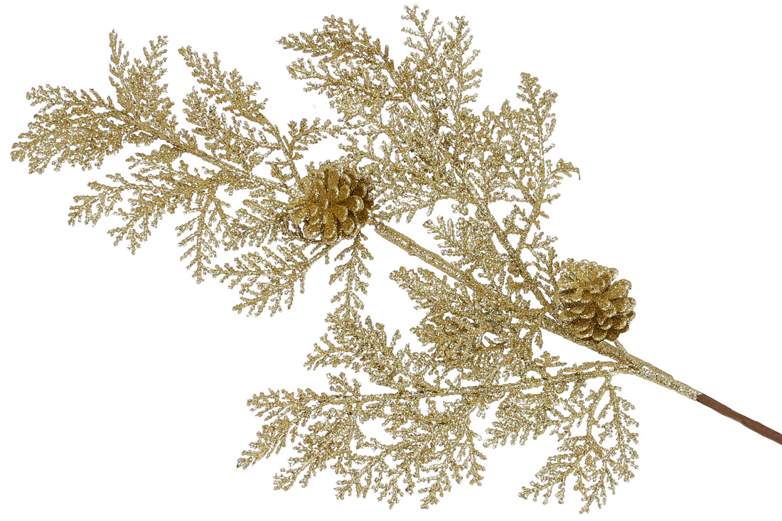 Декоративна гілка хвої з шишками, 67см, колір - золото
