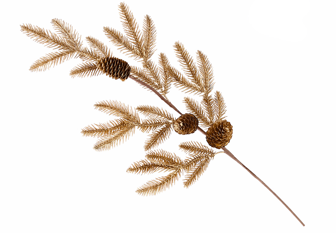 Декоративна гілка хвої з шишками 73см, колір - матове золото