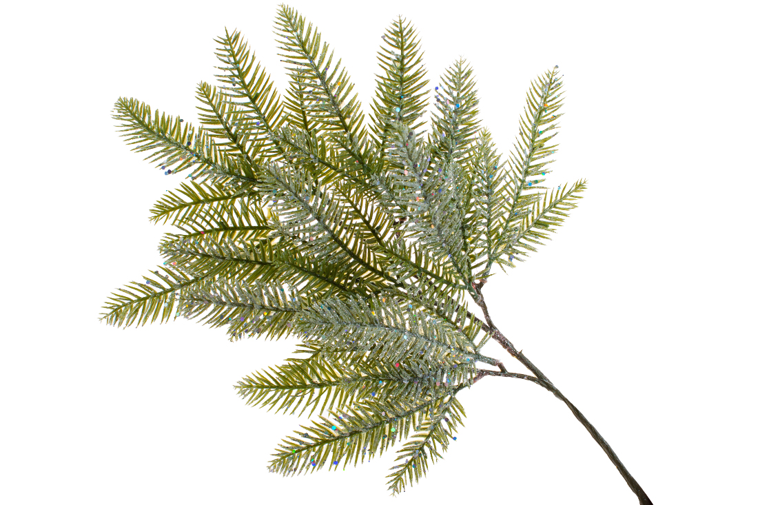 Декоративна гілка хвої в сріблястому гліттері, 55см