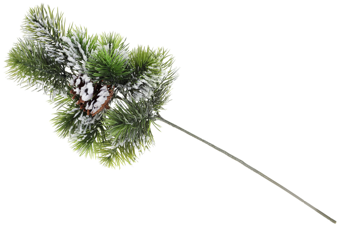 Декоративна гілка хвої засніжена з шишкою, 60см