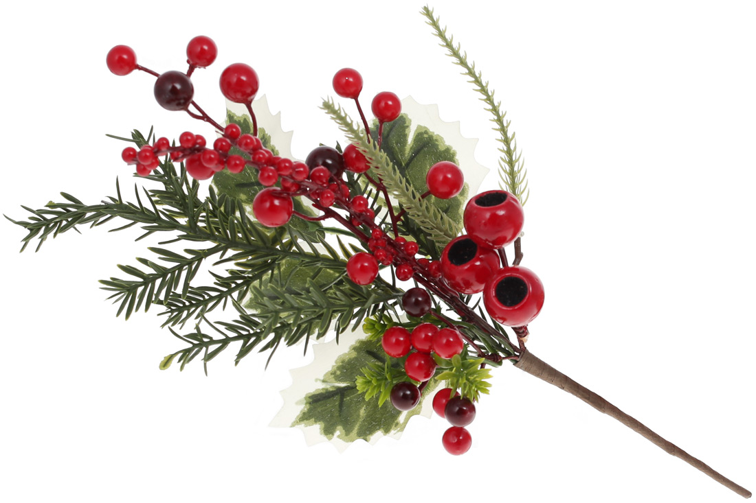 Декоративна гілка з хвої та червоно-бордових ягід, 33см
