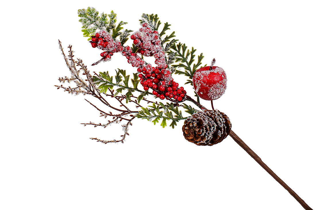 Декоративна гілка з хвої та червоних ягід з яблучком та шишкою, 38см