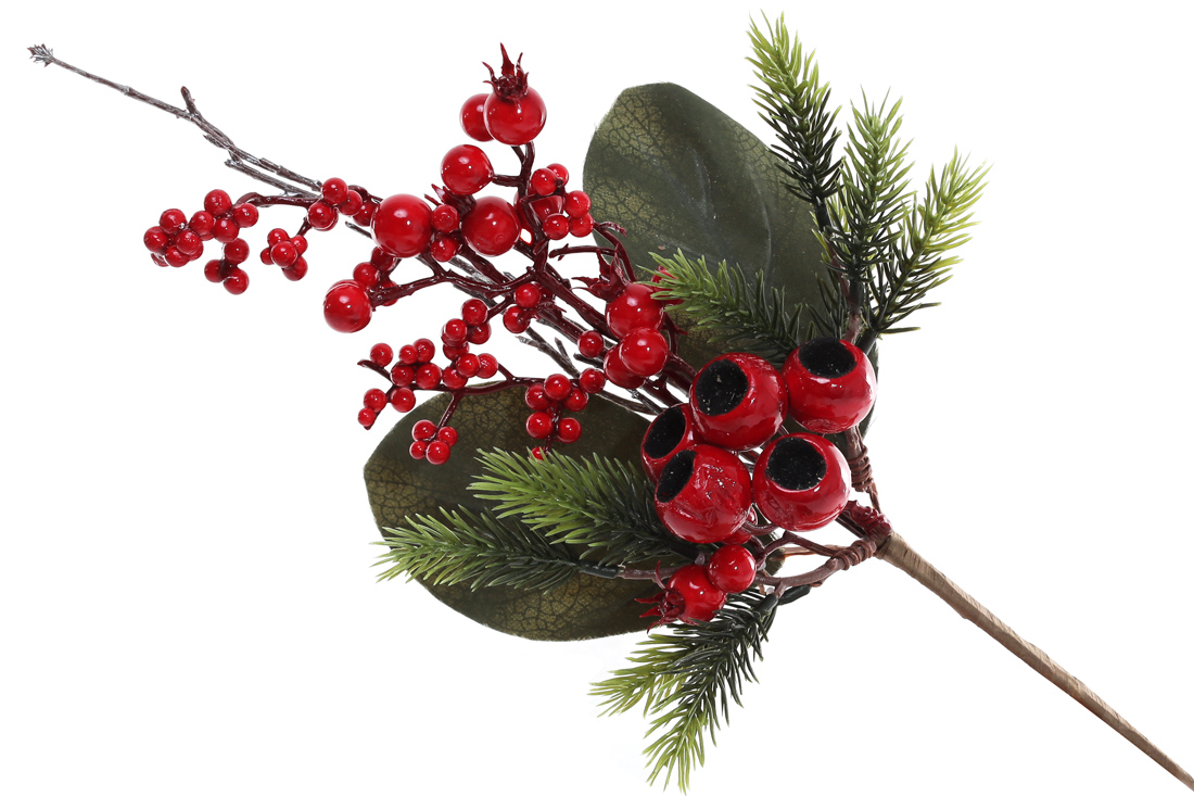 Декоративна гілка з хвої, листя та червоних ягід, 39см