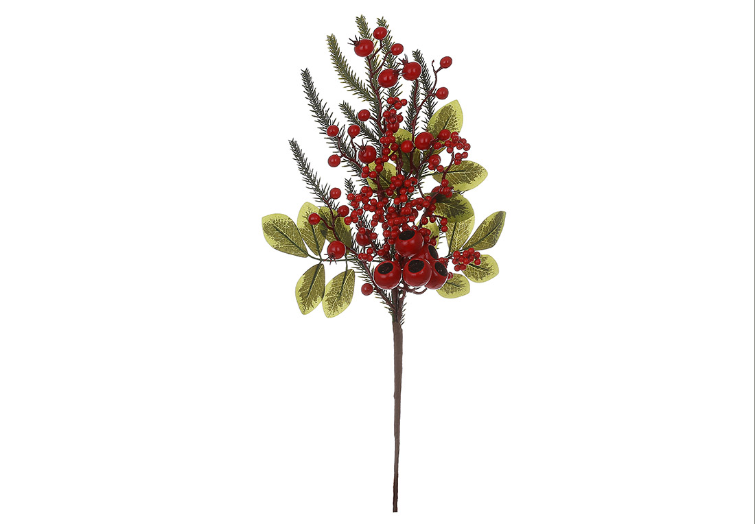 Декоративна гілка з хвої, листя та червоних ягід, 44см