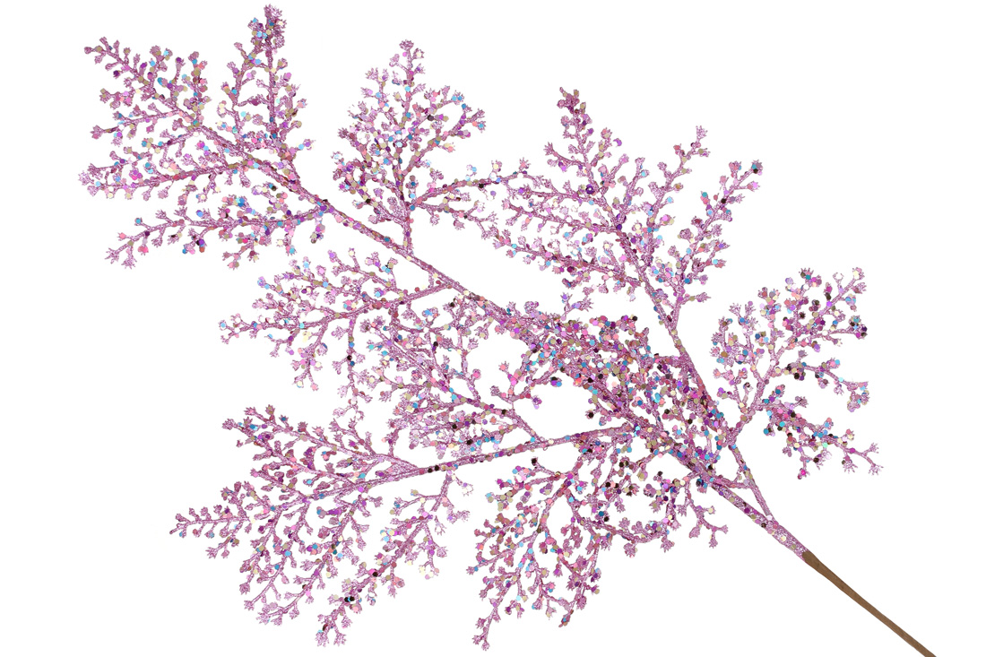 Декоративна гілка Корал 75см, колір - бузковий гліттер