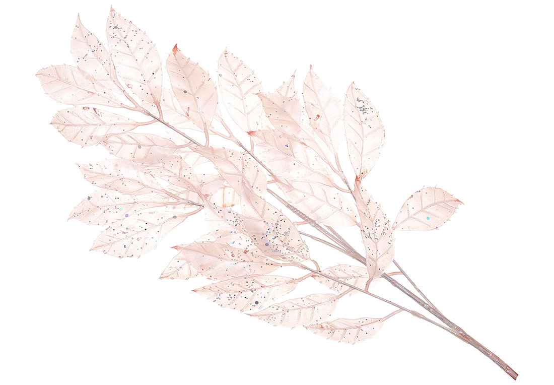 Декоративна гілка Листя 54см, колір - рожевий з гліттером