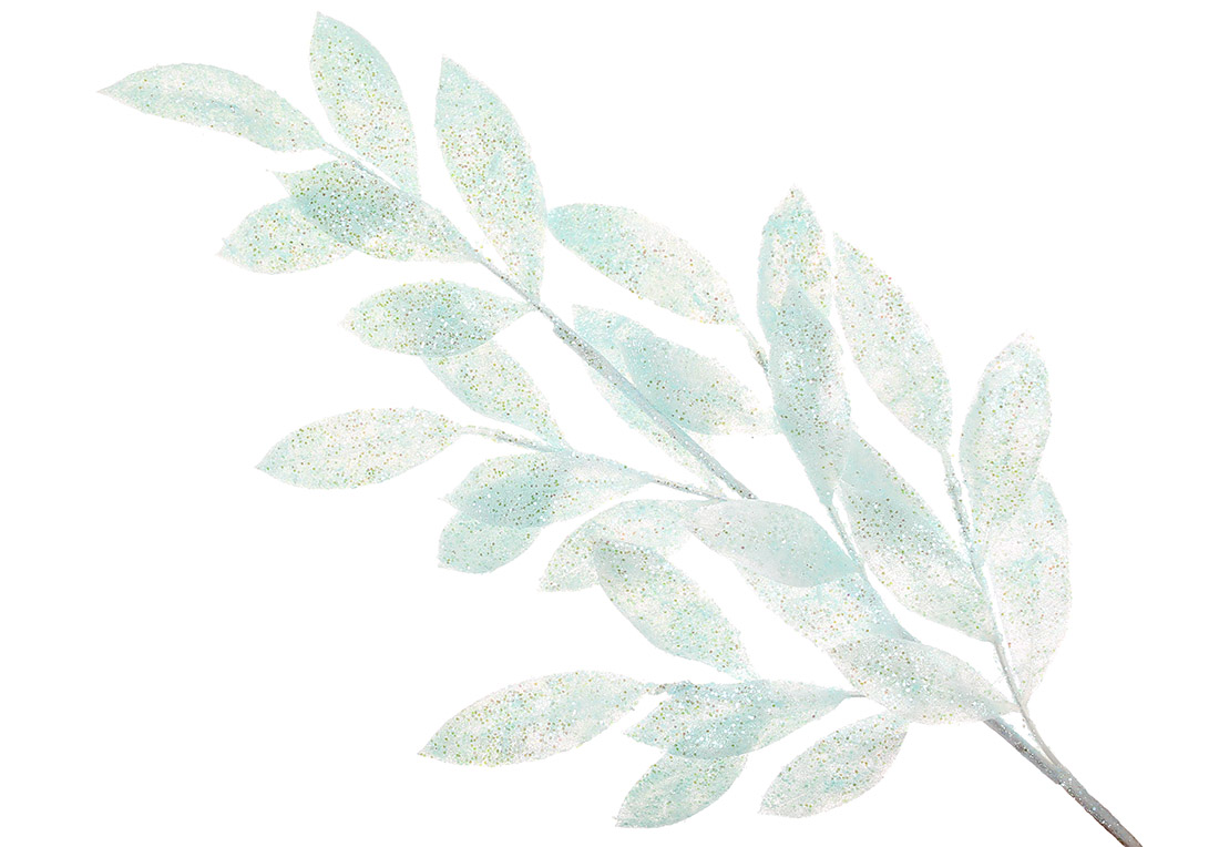 Декоративна гілка Листя 73см, колір - блакитний з гліттером