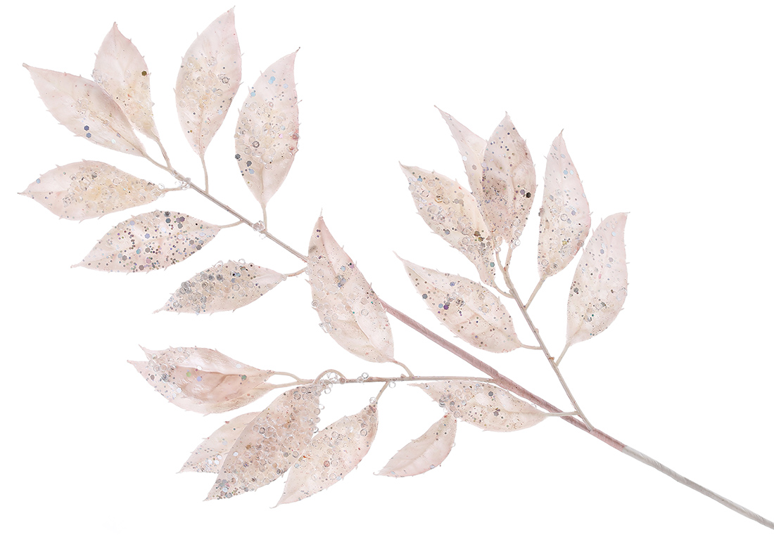 Декоративна гілка листя у льоду 66см, колір - рожевий перламутр