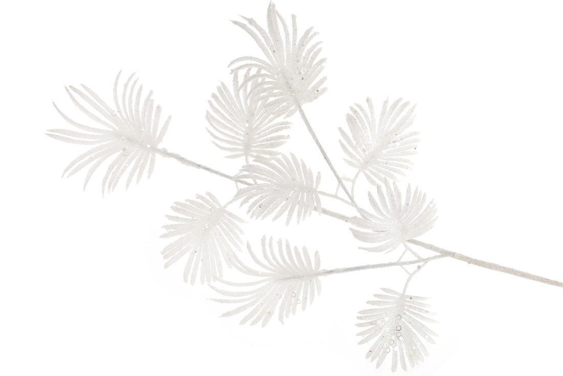 Декоративна гілка Пальма (9 листьев) 70см, колір - білий гліттер