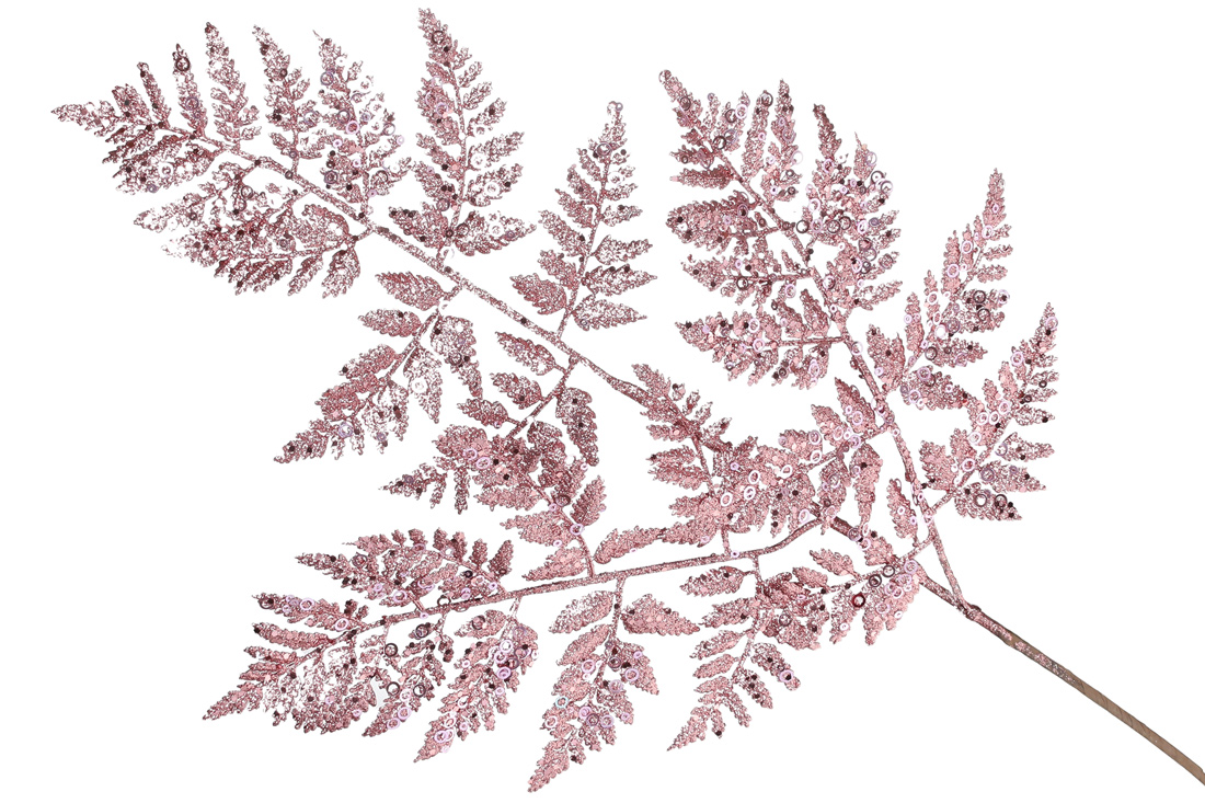 Декоративна гілка Папороть в гліттері та паєтках, 76см, колір - темно-рожевий