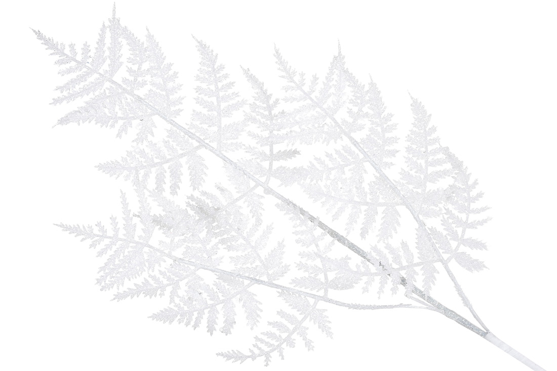 Декоративна гілка Папороть 66см, колір - білий гліттер
