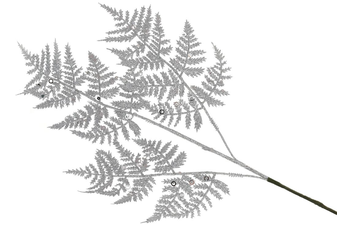 Декоративна гілка Папороті 66см, колір - срібний гліттер