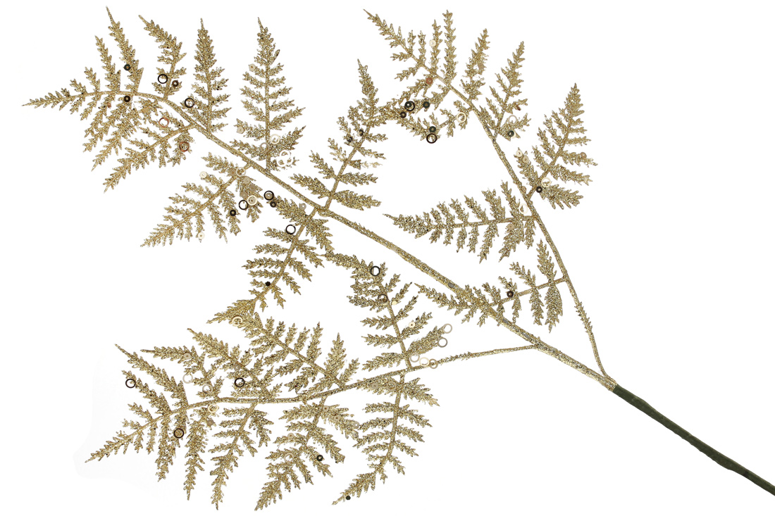 Декоративна гілка Папороті 66см, колір - золотий гліттер