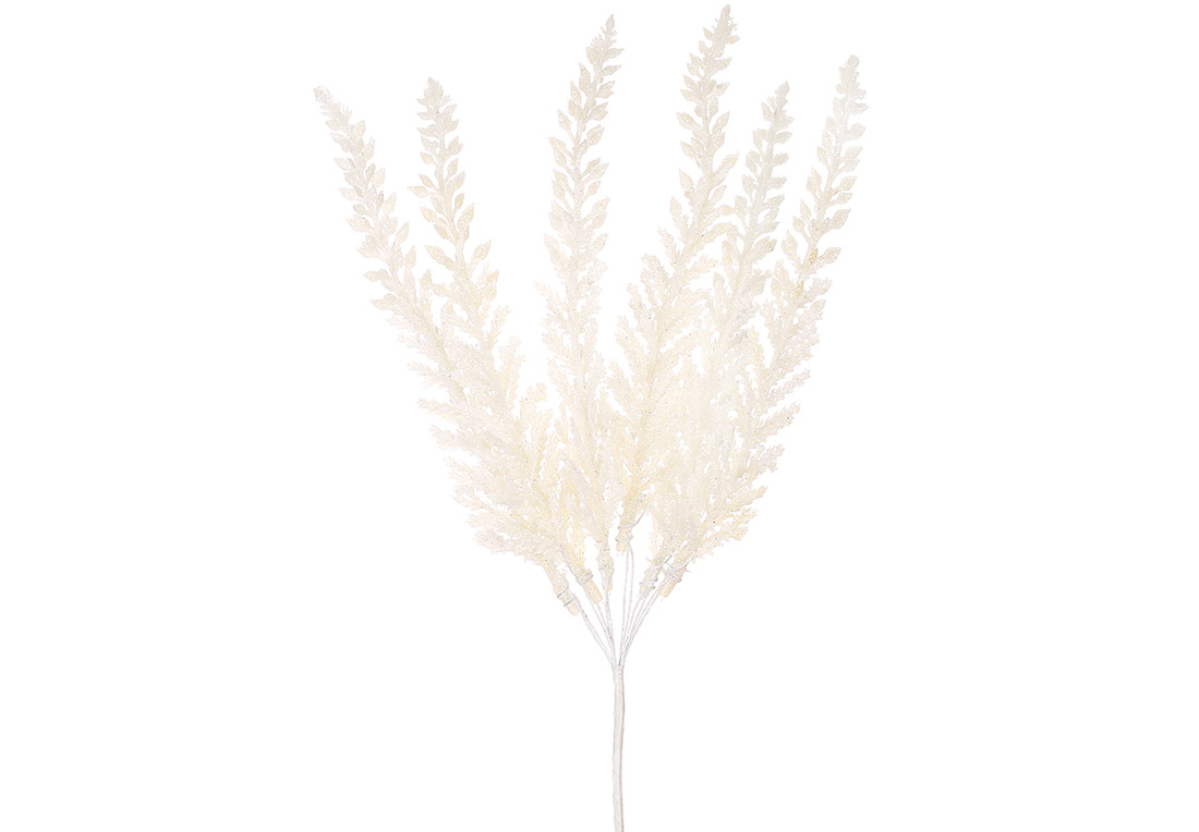 Декоративна гілка папороті в гліттері 29см, колір - білий