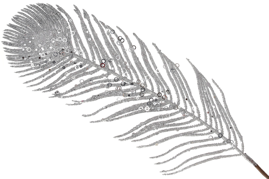 Декоративна гілка Перо Павича 69см, колір - срібло гліттер