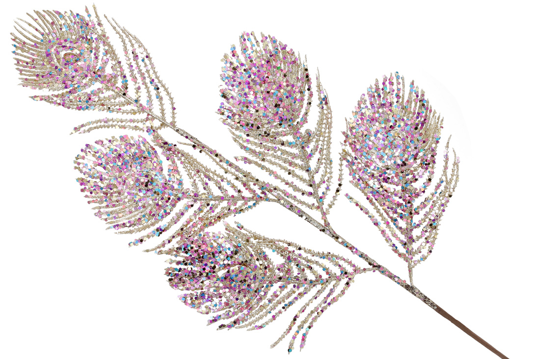 Декоративна гілка Пір'я Павлина (5шт), 70см, колір - золотий гліттер