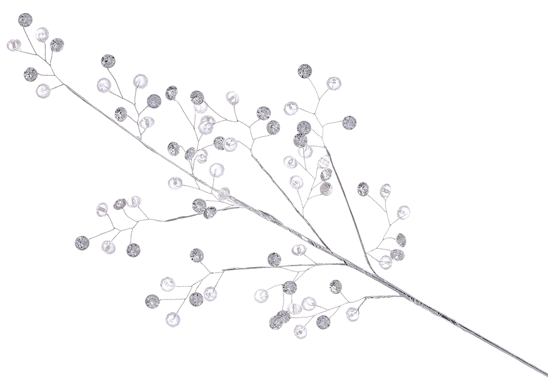 Декоративна гілка з акриловим камінням 72см, колір-білий зі сріблом