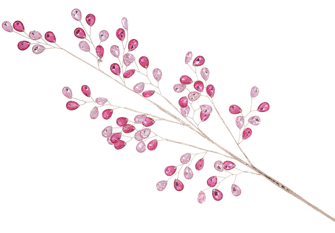 Декоративна гілка з акриловим камінням 72см, колір рожевий з малиною