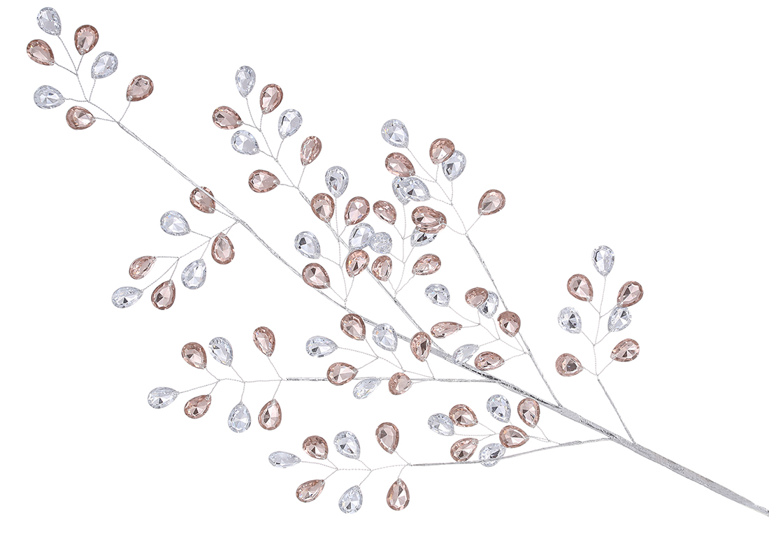 Декоративна гілка з акриловими краплями 72см, колір - срібло з бежевим
