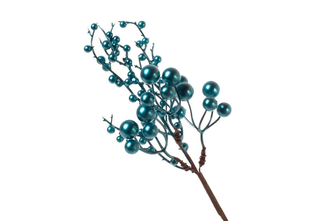Декоративна гілка з блакитними перламутровими ягодами, 25см