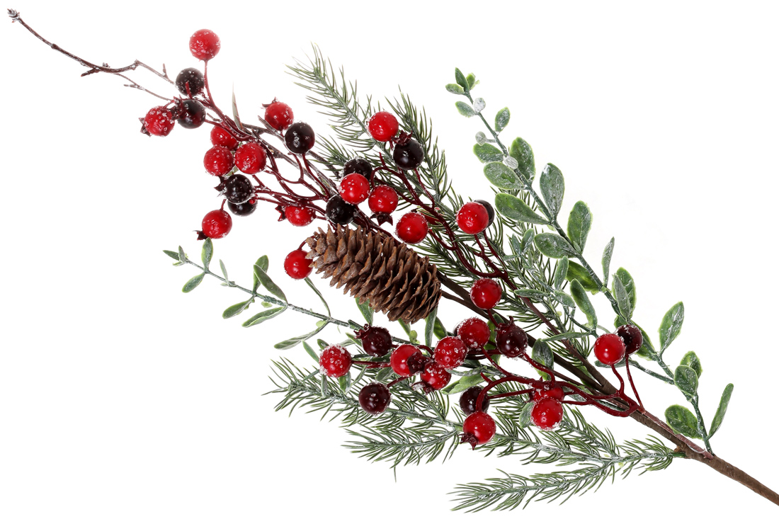 Декоративна гілка з хвоєю, листям та червоними ягодами, 65см