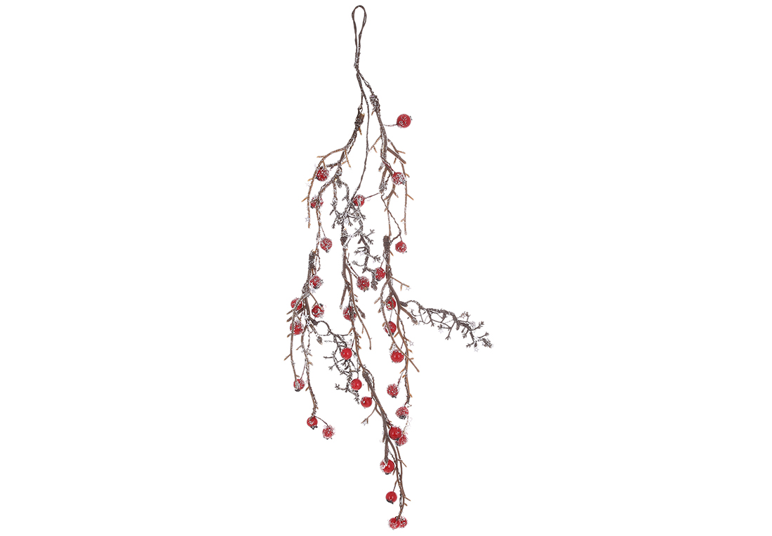Декоративна гілка з червоними ягодами 40см, колір - коричневий з червоним