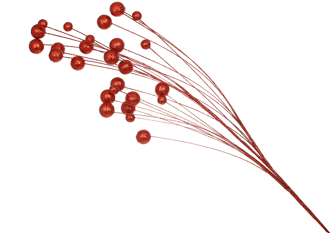 Декоративна гілка з червоними ягодами в гліттері 86см, колір - червоний