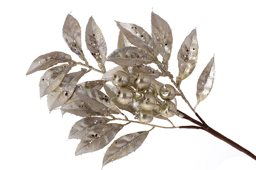 Декоративна гілка з листям та ягодами 50см, колір - шампань