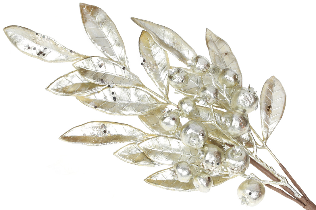 Декоративна гілка з листям та ягодами 51см, колір - шампань