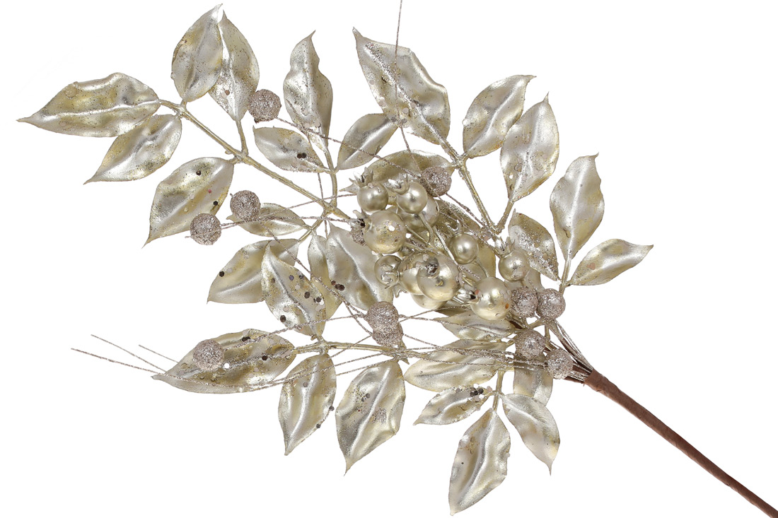 Декоративна гілка з листям та ягодами 55см, колір - шампань