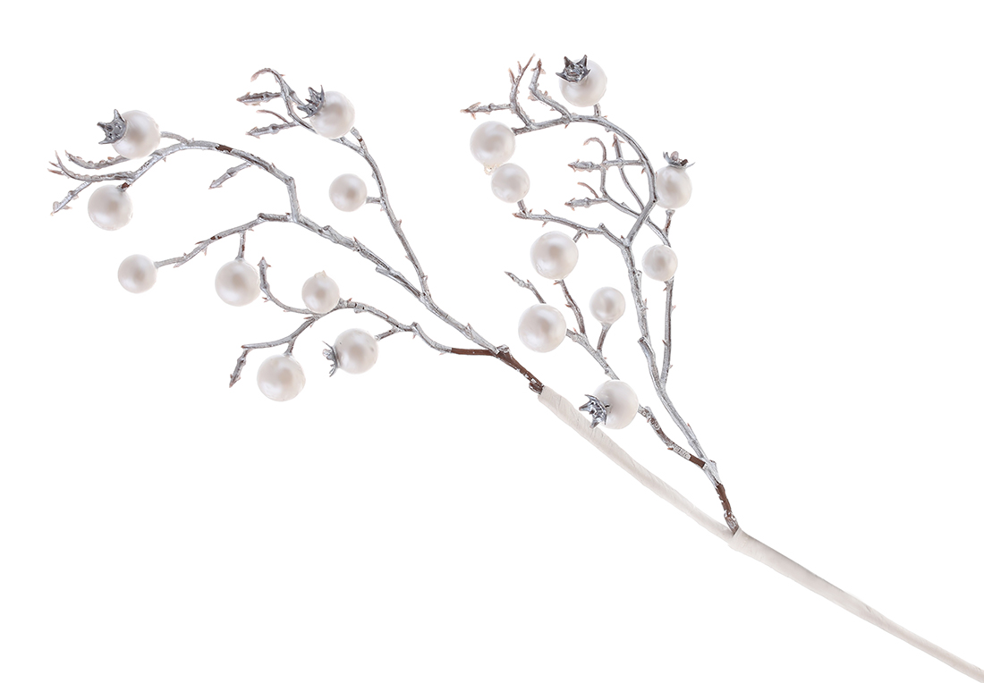 Декоративна гілка з перламутровими ягодами 48см, колір - перлинний білий