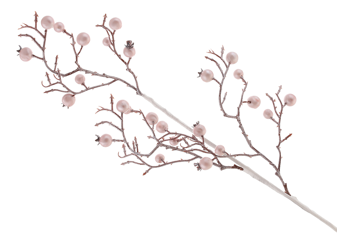 Декоративна гілка з перламутровими ягодами 63см, колір - ніжний рожевий