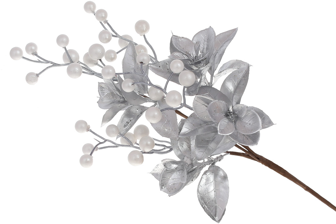 Декоративна гілка із сріблястим листям та білими ягодами, 43см