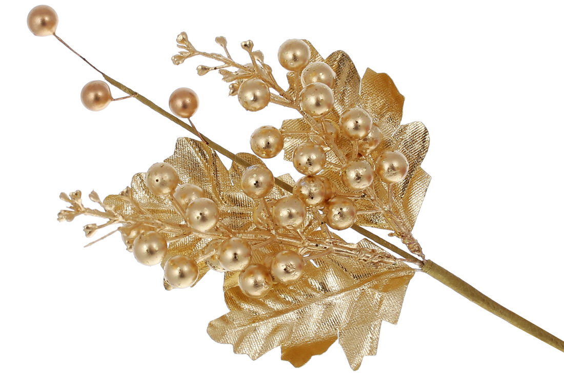 Декоративна гілка з ягодами 29см, колір - матове золото