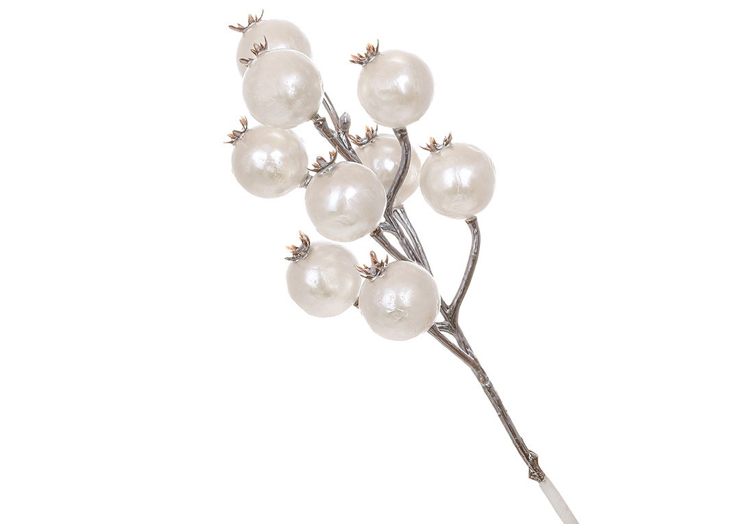 Декоративна гілка з ягодами 32см, колір - білий перламутр