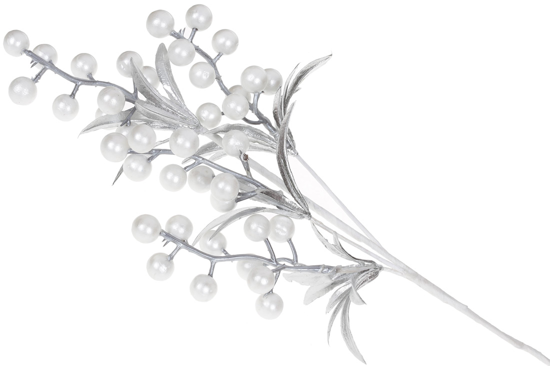 Декоративна гілка з ягодами 40см, колір - білий перламутр