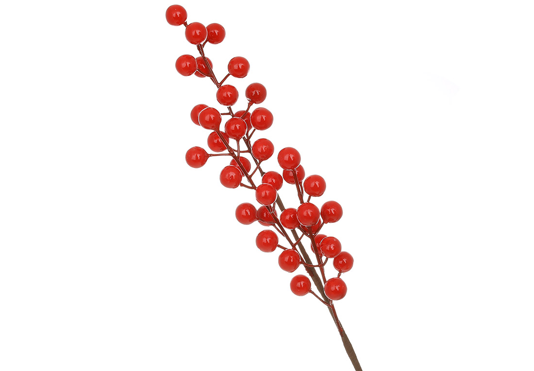 Декоративна гілка з ягодами 46см, колір - червоний глянець
