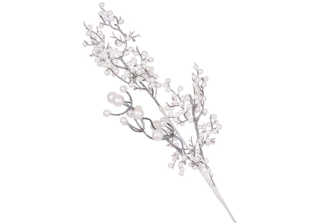 Декоративна гілка з ягодами 46см, колір - білий перламутр