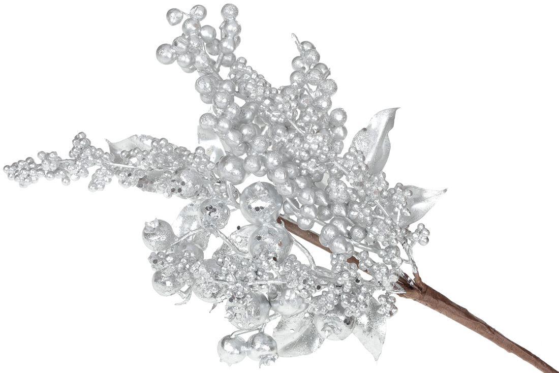 Декоративна гілка з ягодами та листям 49см, колір - матове срібло
