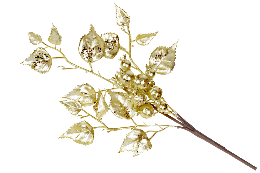 Декоративна гілка з ягодами та листям 50см, колір - матове золото