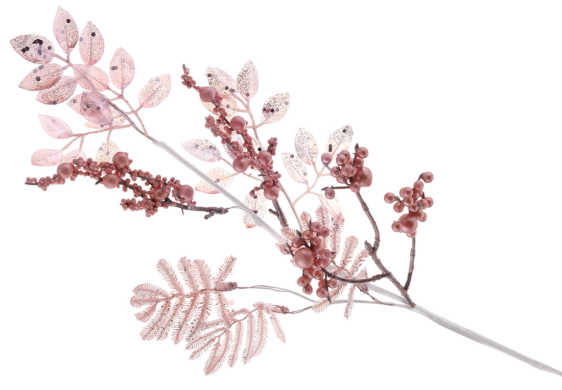 Декоративна гілка з ягодами та листям, 57см, колір - рожевий