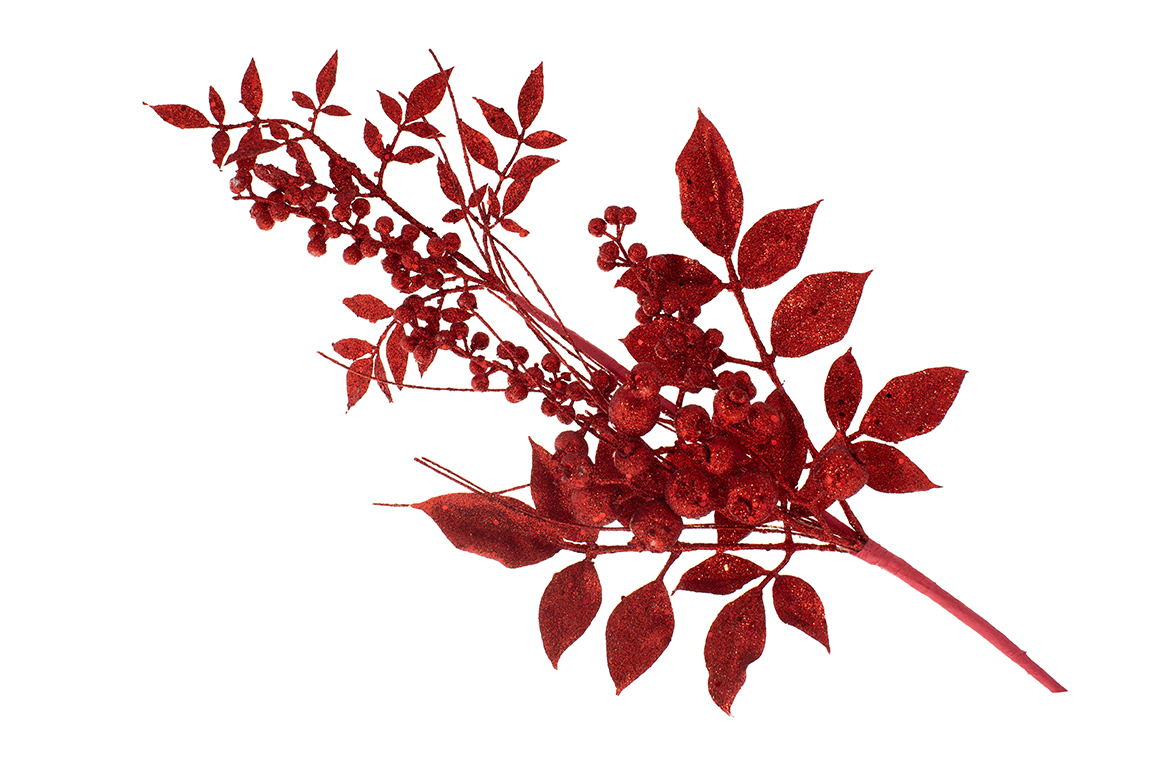 Декоративна гілка з ягодами та листям 70см, колір - червоний гліттер