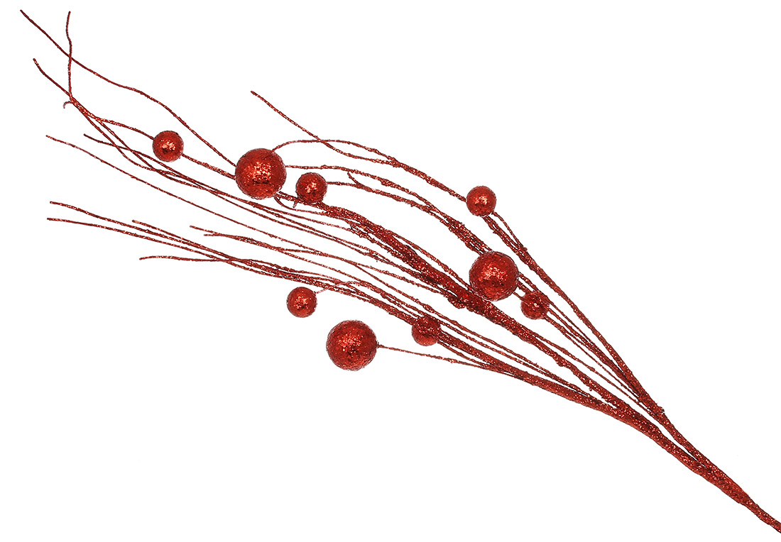 Декоративна гілка з ягодами в гліттері 78см, колір - червоний